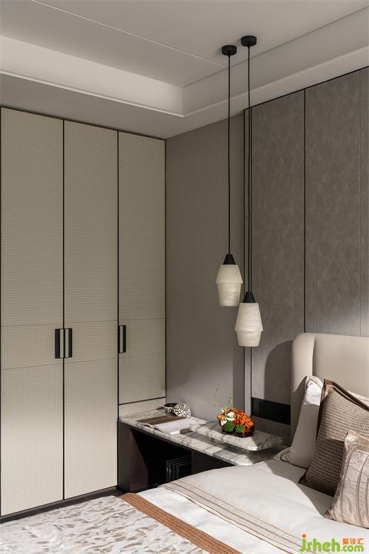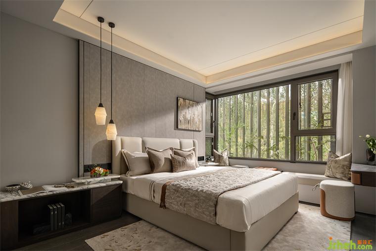 主臥空間以黑白線條設(shè)計為基調(diào),雅白色彩豐富層次,每一處都充滿優(yōu)雅愜意的生活氣息。樣板間設(shè)計大尺度的活動空間,激活空間本身所容納的多種生活方式,塑造出休憩空間的多重美感。