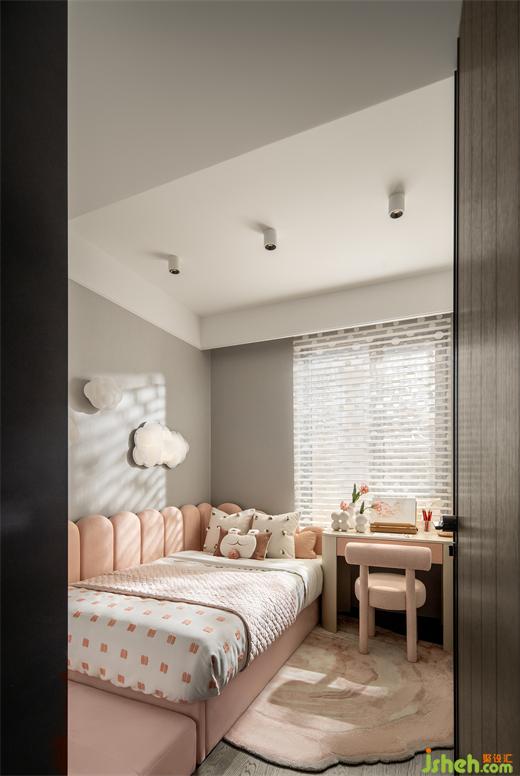 粉色的女兒房溫馨可愛,采用粉色卡通造型家具裝飾,營(yíng)造出夢(mèng)幻浪漫的氛圍。搭配可愛的抱枕和云朵掛燈,讓整個(gè)房間充滿童趣和溫馨感。