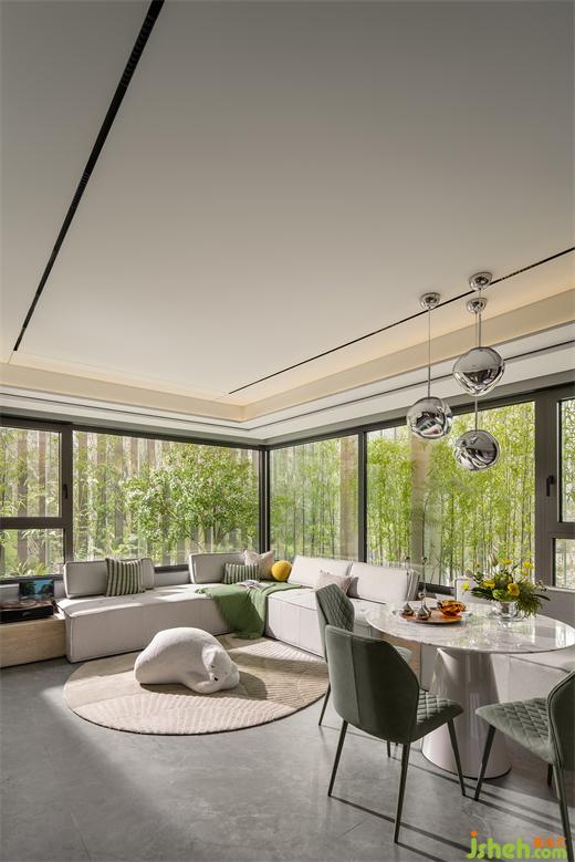 釋放負(fù)荷,生活恣意??蛷d空間光與影來(lái)回交替,動(dòng)與靜地變幻,光影游走,樣板間設(shè)計(jì)賦予空間清新脫俗的氣質(zhì)。