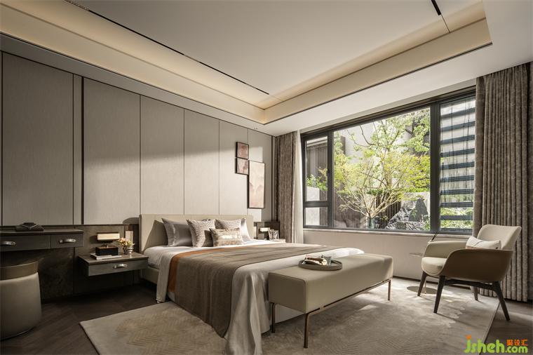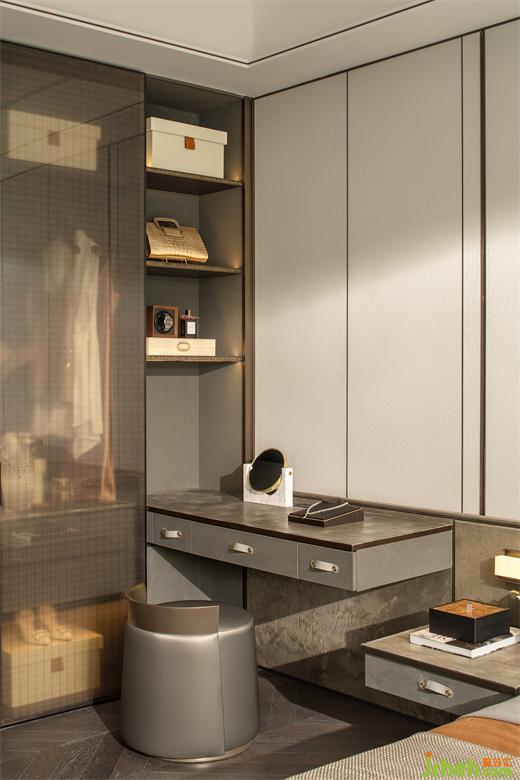 主臥衣帽間、單獨(dú)衛(wèi)生間以及梳妝臺的設(shè)置,樣板房設(shè)計(jì)滿足了實(shí)際的功能需求。品質(zhì)感家居產(chǎn)品和床頭柜細(xì)節(jié)營造,為主人提供了舒適的睡眠環(huán)境。