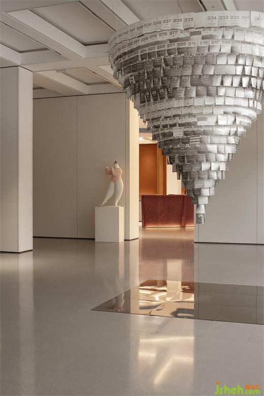 一張張日歷向中心流動,似沙粒般的堆疊下形成“時間的沙漏”,售樓處設計聯(lián)合窗內(nèi)的箴言、窗外的藝術涂鴉組構(gòu)出更有層次、審美愉悅的城市微景觀,于感性的抽象描摹出生活的溫度。
