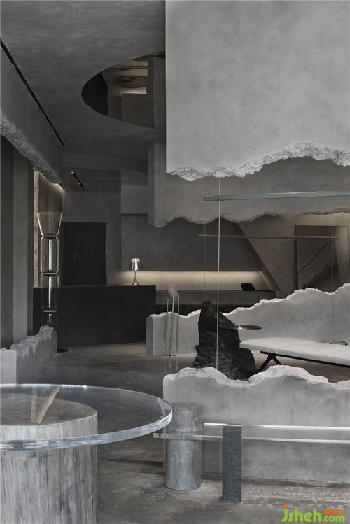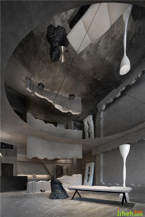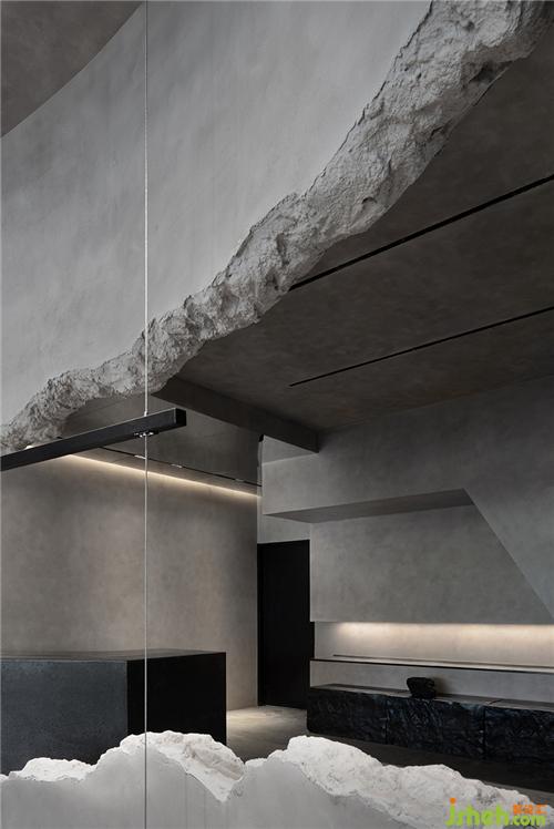 The designer's inspiration is coming from an American artist of Daniel Arsham,also they are influenced by Arsham's ancient style. They are keeping original architectural effect on the design, they also create a cracked wall, While expressing the archaeological space in the space, it regards one wall as a barrier, and the mottled wall is torn by a kind of traction force. When the wall connecting the ceiling and the floor cracks, the debris collapses, another different world will display in slowly in orderly, as like this is a cracked world of ruins, it also the intersection point between space to space.