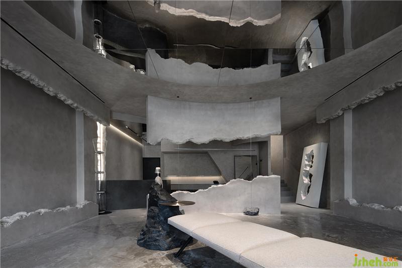 The whole space is torn apart by an invisible traction force. When the walls are torn up and down, a dimensional space is formed in the middle, which is a special multi-dimensional space. Designers hope that this space is full of a sense of power. It is because of the existence of power that the dimension can be formed and the concept of dimension can be permeated through the space.