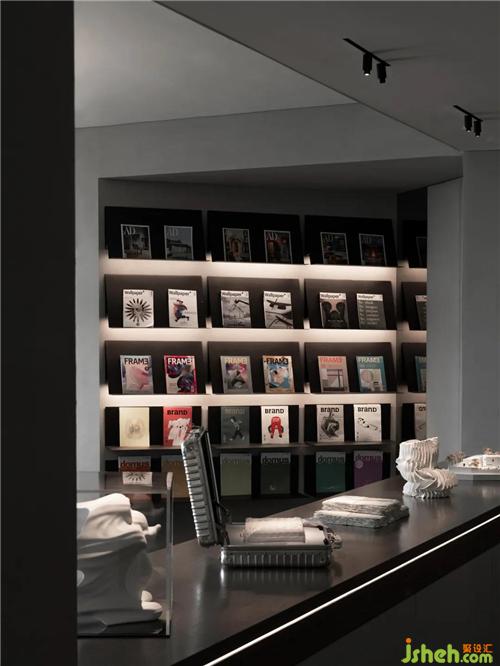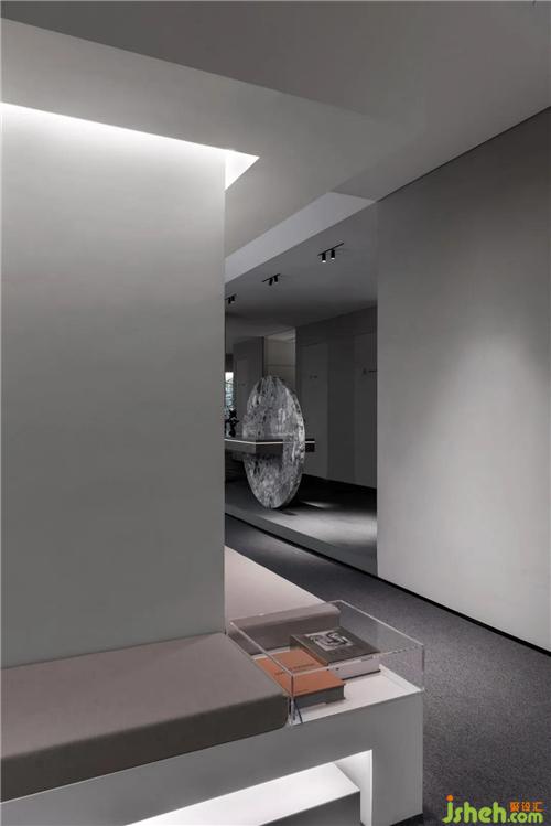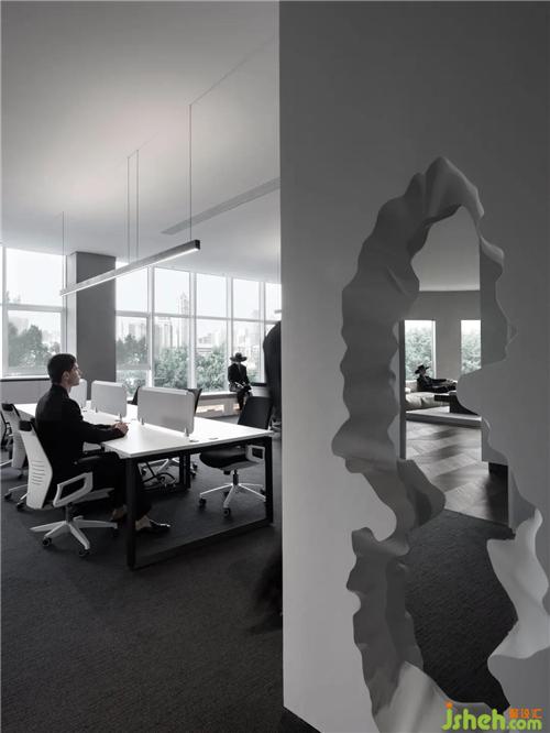 在設(shè)計(jì)入門區(qū)域講究規(guī)避門對(duì)門,設(shè)計(jì)上在巧妙地打破常規(guī)公司入門的傳統(tǒng)設(shè)計(jì)效果,舍去直接看到入門以及公司LOGO的方式,而是巧妙地將現(xiàn)代設(shè)計(jì)與風(fēng)水理論相結(jié)合,采用隱蔽性設(shè)計(jì)手法模糊了人們對(duì)于入門空間區(qū)域固有印象。古語有云“以水為財(cái)”,設(shè)計(jì)師在大理石墻上設(shè)計(jì)了一面瀑布?jí)?,以表其寓意,流水潺潺著為整個(gè)入門空間增添了一份生氣。