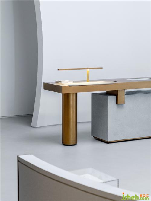 △ 天花上的大型燈膜裝置是空間中的主要光線,前廳內(nèi)光線不斷變換,從明亮到幽暗,給人一種肅穆感及未來(lái)感