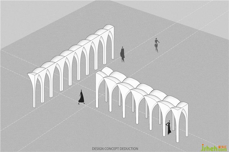 △ 莊嚴(yán)的三曲面拱形長廊和時尚T臺的結(jié)合