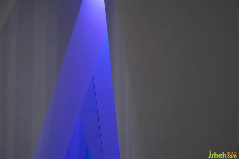 在建筑里創(chuàng)造幾何能量場,旗艦店設(shè)計斜率結(jié)構(gòu)通過鏡面反射營造視覺焦點,線性聚合的盡頭充滿神秘,穿過長廊進入一個更廣闊的空間?!?△ ”和“ 〇 ”相互作用達到構(gòu)成的平衡,同樣無限循環(huán)的進程帶來無限進化。