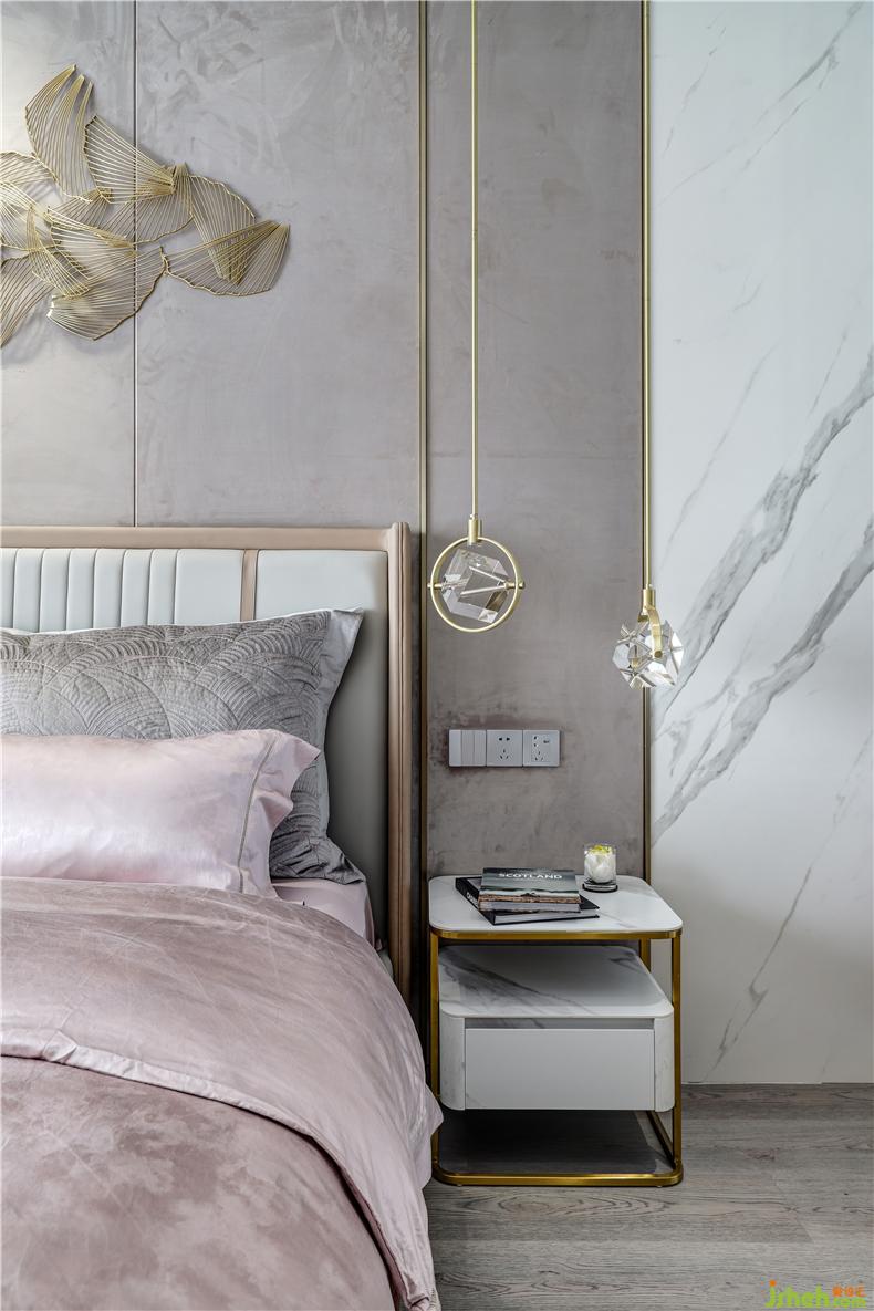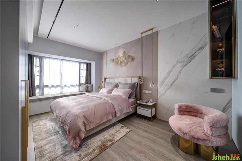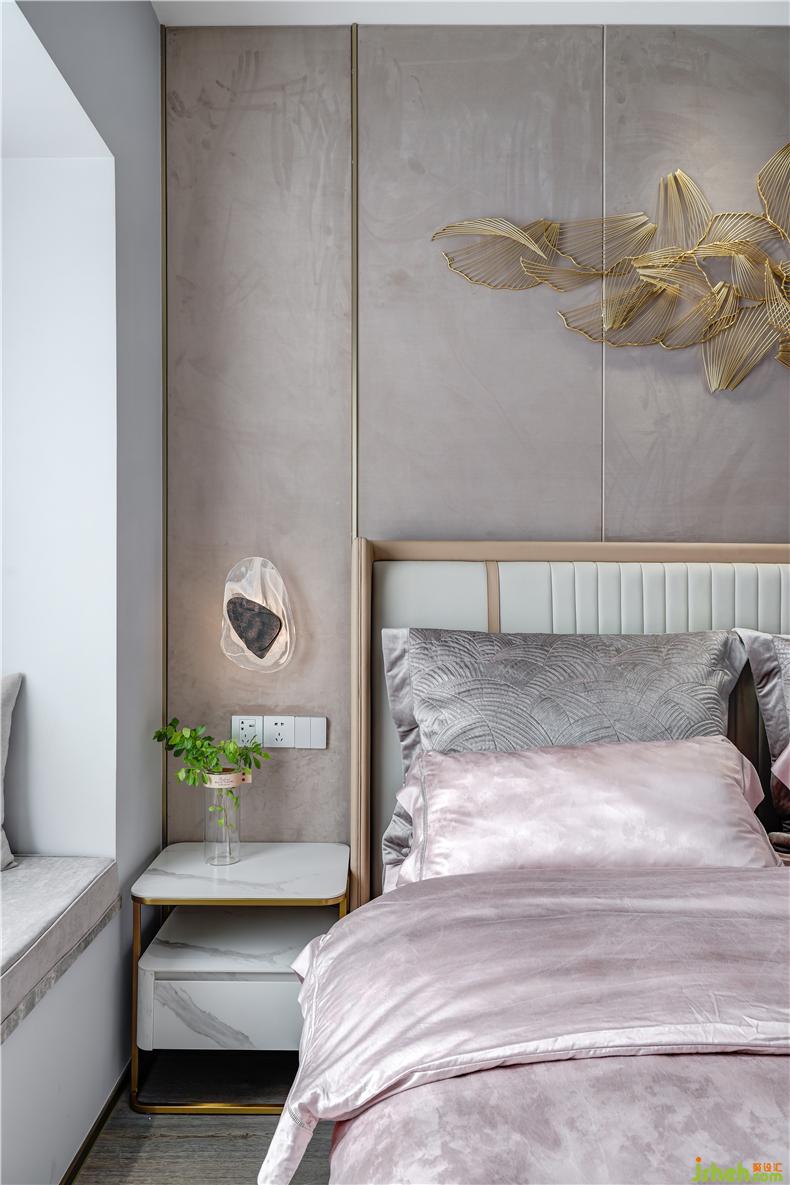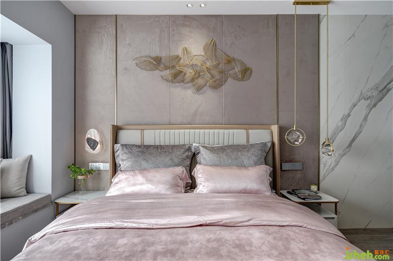 以低飽和度粉系色為主色調(diào)的主臥空間