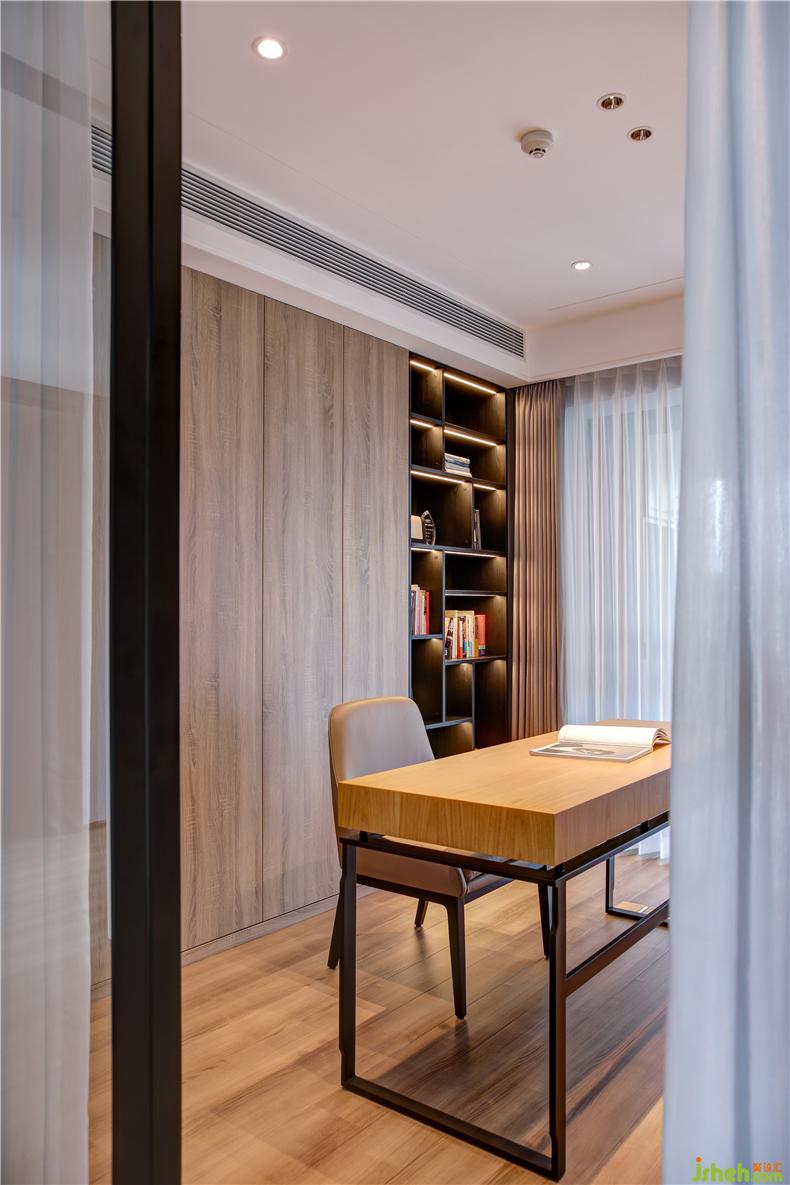 書房又稱書齋,齋者,潔也,有高潔清雅之意。以木色的簡潔樸質(zhì)為主脈絡(luò),空間不失內(nèi)斂穩(wěn)重