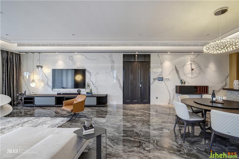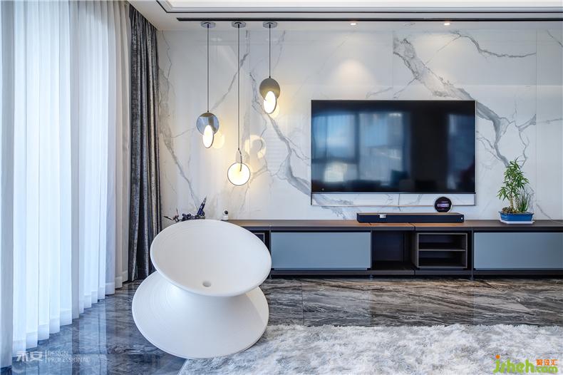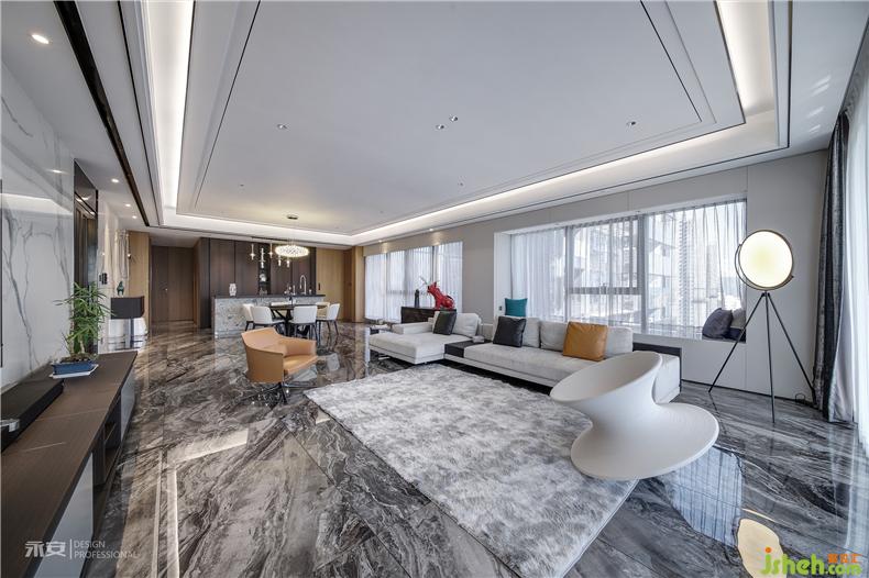 猶如浩渺煙波般的大理石地板層次豐富、平靜柔和,起到調(diào)劑空間色彩的作用,平衡統(tǒng)一的視覺(jué)效果臻至完美