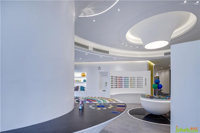 展示廳內(nèi)的空間形體以圓弧與曲面為主