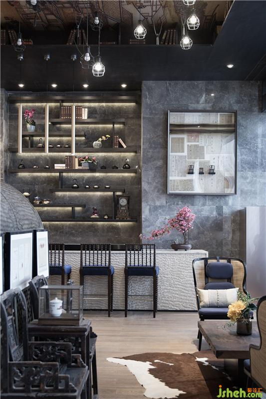城市記憶館兼具文化展示、水吧、書(shū)吧功能,窗戶以中式窗洞的形式設(shè)計(jì)成通透書(shū)架,豐富的立面層次,同時(shí)保證戶外采光及視線。