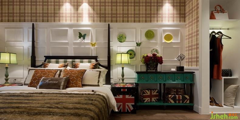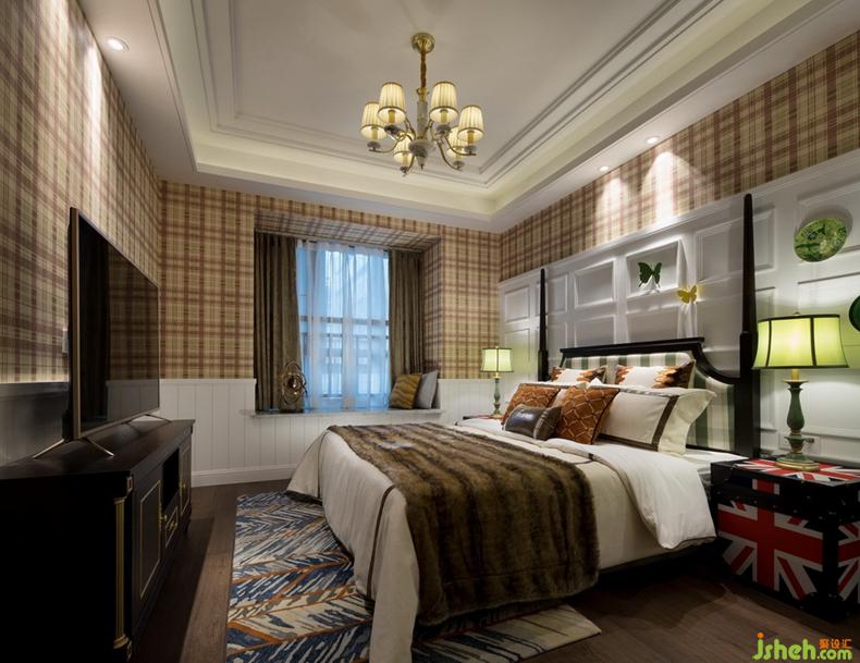 主臥簡約清新的英倫風(fēng),如同令人向往的莊園生活般富有詩意和情調(diào),搭配大面積的方格圖案墻紙和簡單的飾品,訴說著靜謐時(shí)光里的美好。