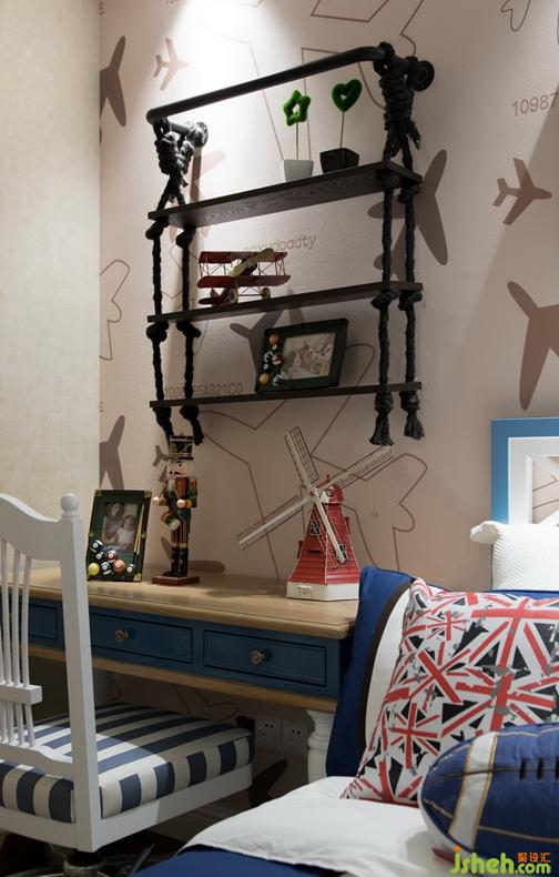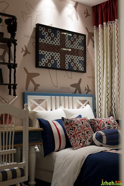 對(duì)于小孩房,設(shè)計(jì)師注重營造一個(gè)充滿趣味性的舒適空間,融入了刻有飛機(jī)卡通圖案的墻紙、經(jīng)典米字旗元素的地毯和抱枕,還有各種有趣的飾品掛件。