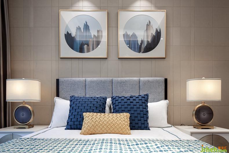 主臥整體氛圍淡雅而不失厚重,在追求精致內(nèi)涵的同時(shí),注重空間居住的舒適度和實(shí)用性。