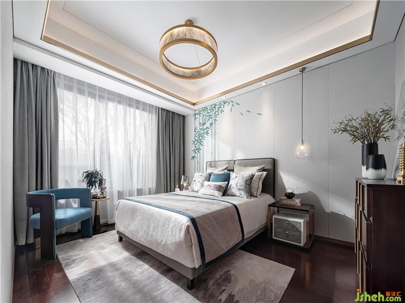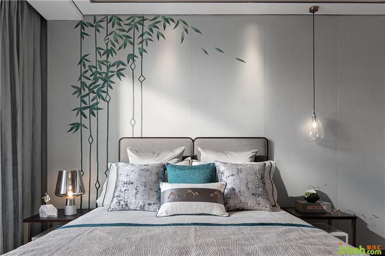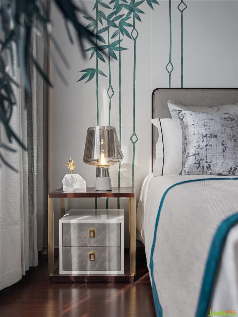 老人房微妙布局,是恰到好處的中和之美。現(xiàn)場(chǎng)手繪的竹林床頭背景設(shè)計(jì),竹子四季常青象征著頑強(qiáng)的生命,“長(zhǎng)壽安寧”在此空間的寓意更顯重要