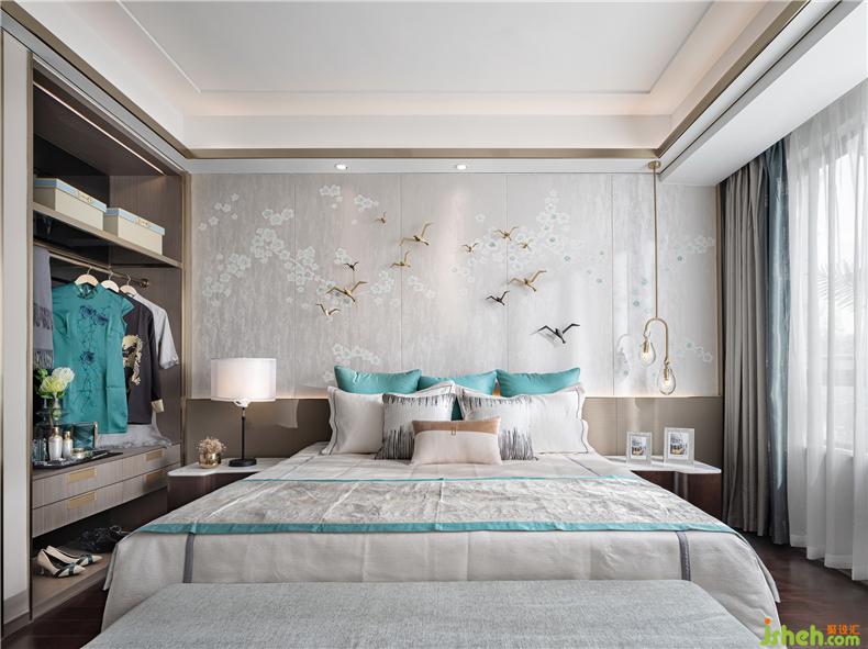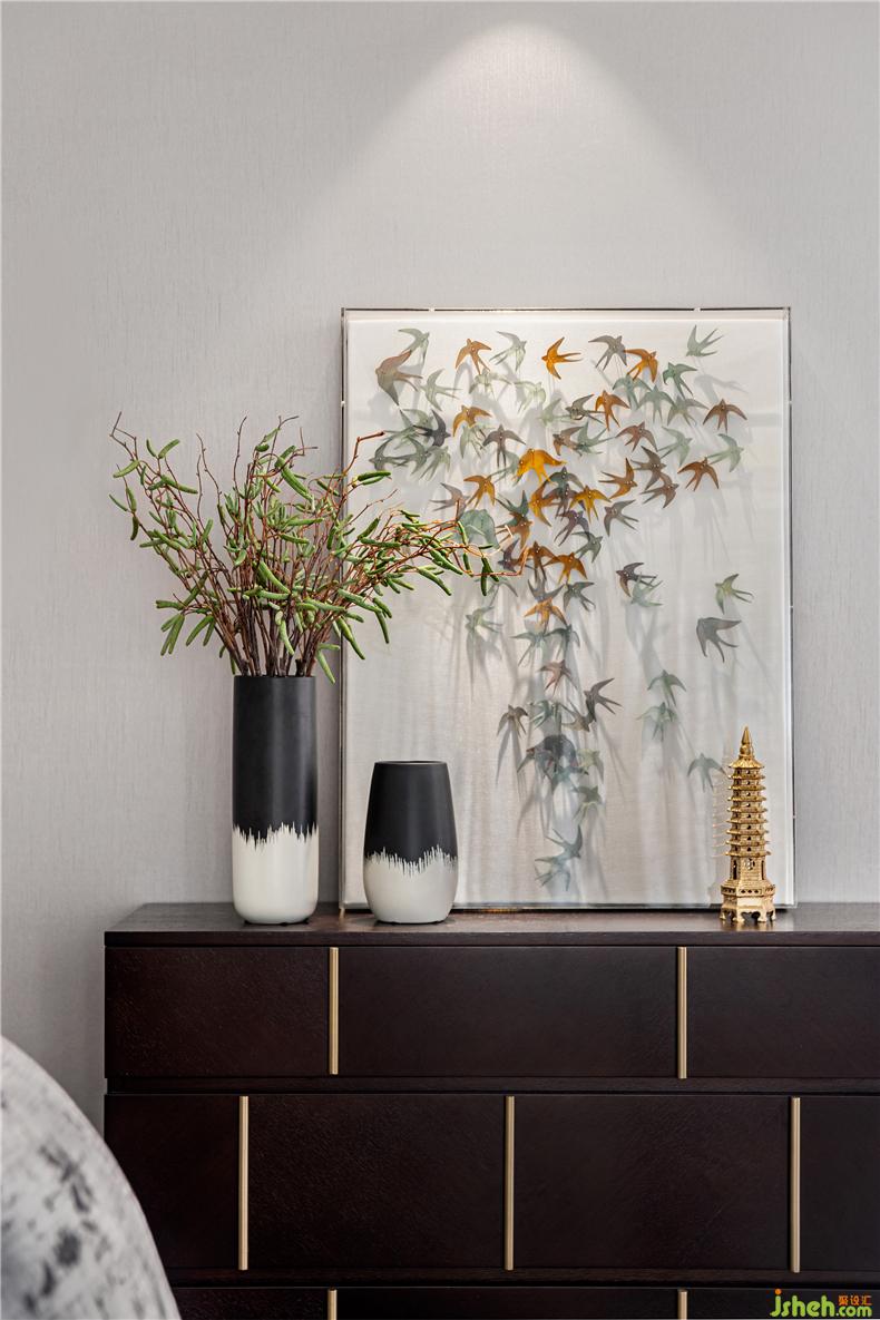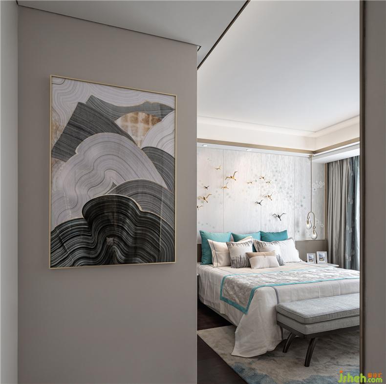 主臥空間,融入東方禪意哲美,輕漾出高雅的梅花紋與群燕的無(wú)限通達(dá)心境,是乍見(jiàn)之歡的視覺(jué)感染,更是久處不厭的靈魂陪伴。在動(dòng)靜之間棲息身心,在美學(xué)之間徜徉藝術(shù)。