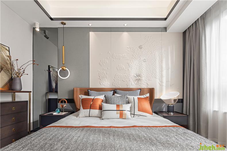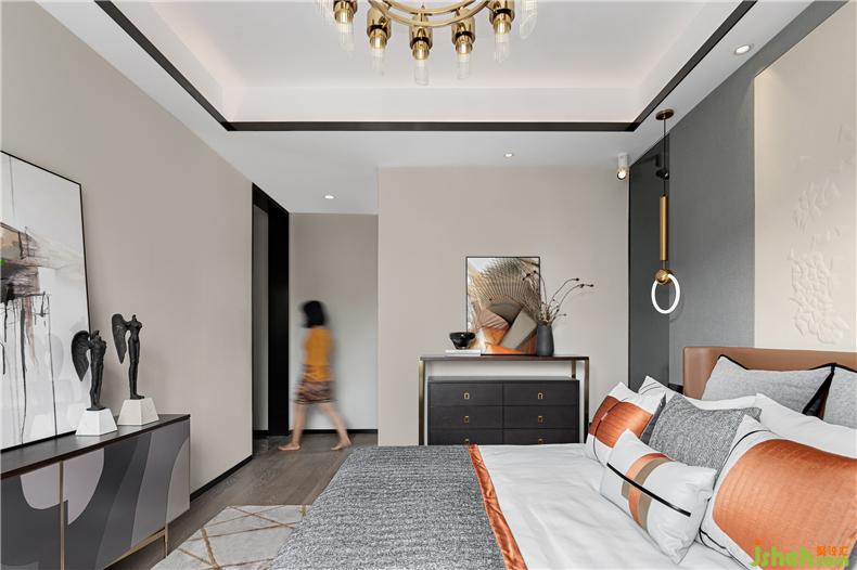 長輩房延續(xù)整體空間的色調(diào),皮質(zhì)硬包結(jié)合相應(yīng)的床飾布藝,樣板房設(shè)計營造優(yōu)雅沉穩(wěn)的空間氛圍。自然的中性色調(diào)中點綴亮色,營造整體中一貫的藝術(shù)時尚格調(diào)