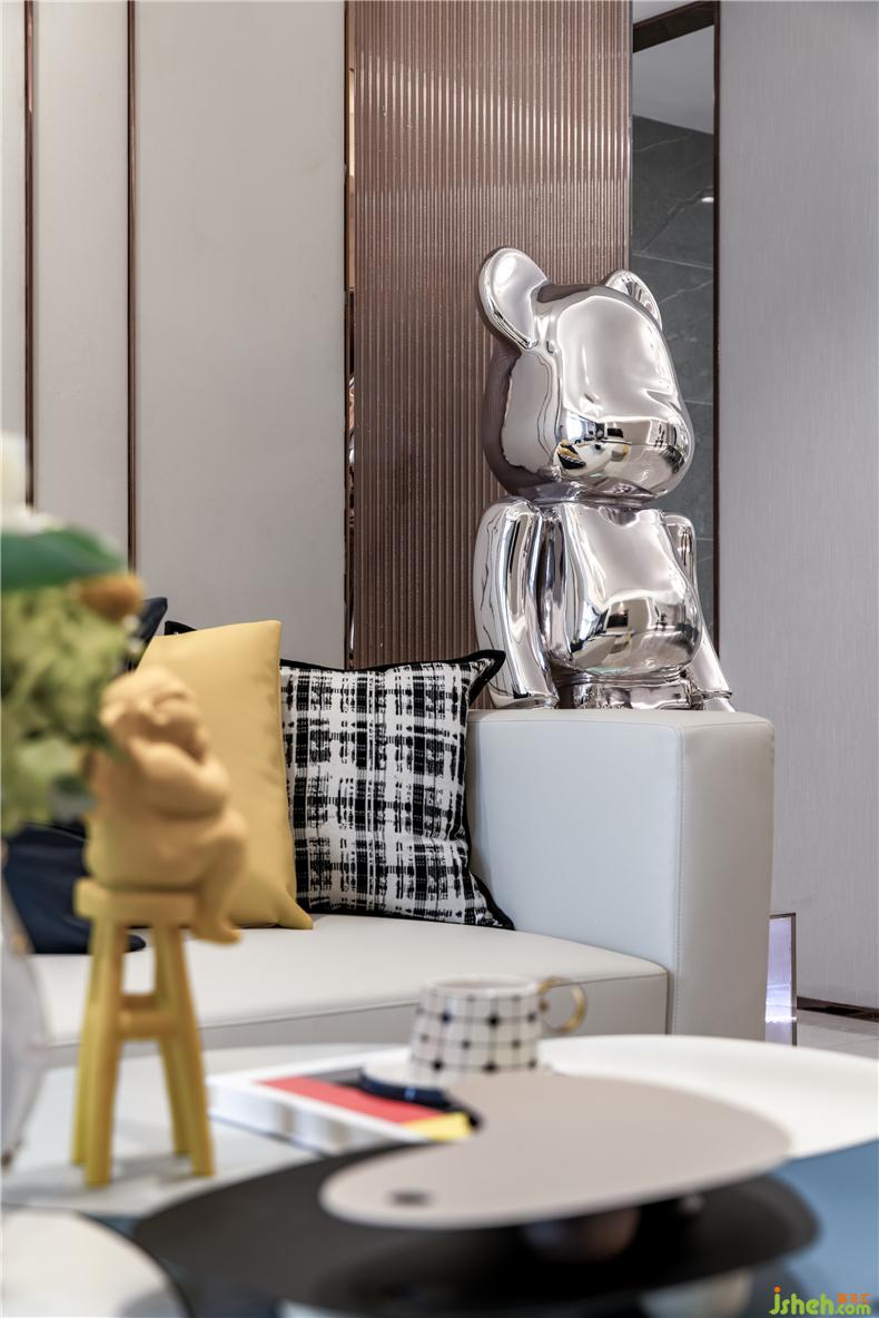 充滿現(xiàn)代風格的的床頭柜,搭配透明的金屬、琉璃床頭燈,它們光影斑駁,樣板房設計余輝細節(jié)都光彩亮麗,出現(xiàn)多層的材質(zhì)變化