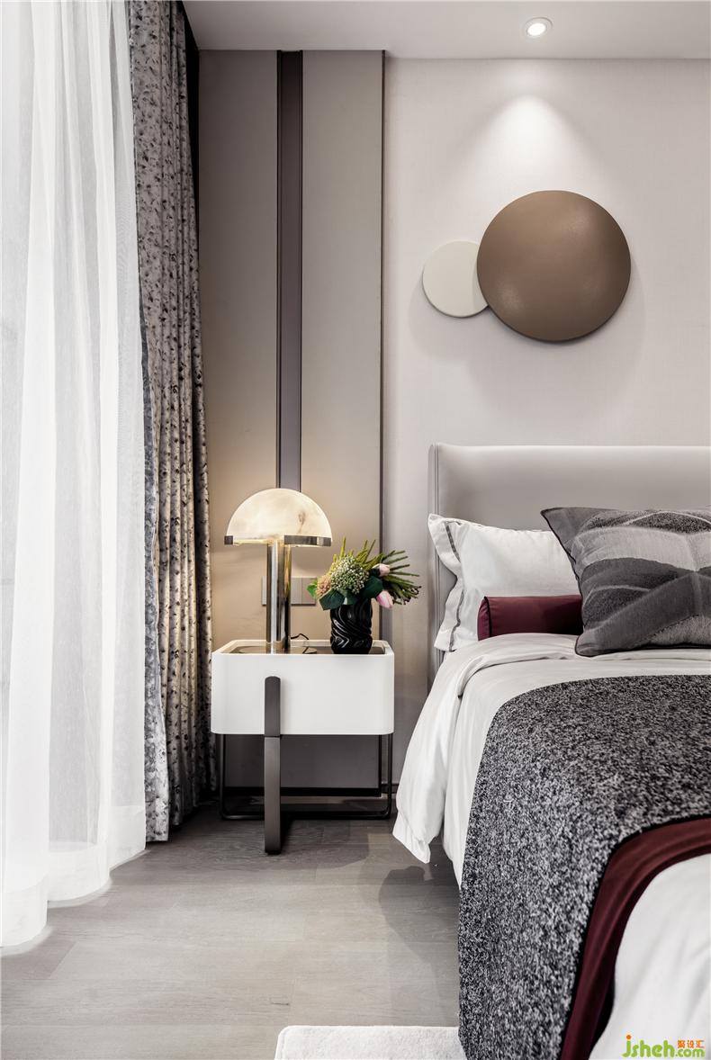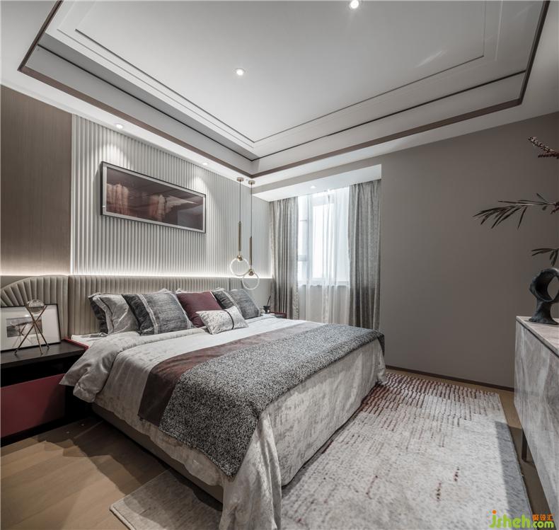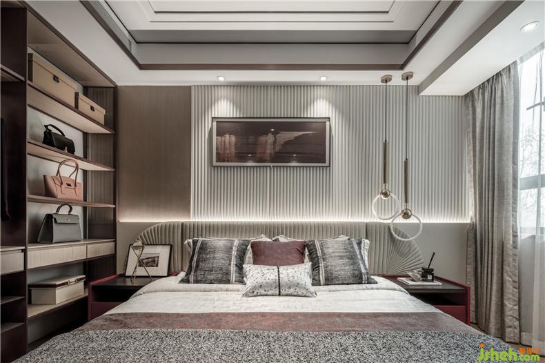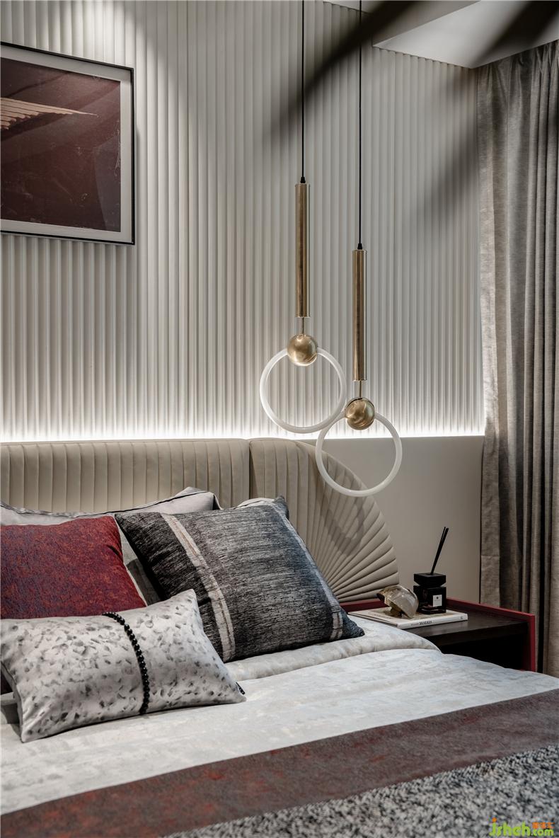 主人房在用色上,并非越艷、越多越好,適當(dāng)是我們設(shè)計(jì)臥室配色的重要原則。床頭背景墻采用格柵,增加質(zhì)感與視覺體驗(yàn),呼應(yīng)床頭靠背,突出空間中的床飾與掛畫的絕佳用色,硬裝與軟裝的相襯,營造最宜居的空間