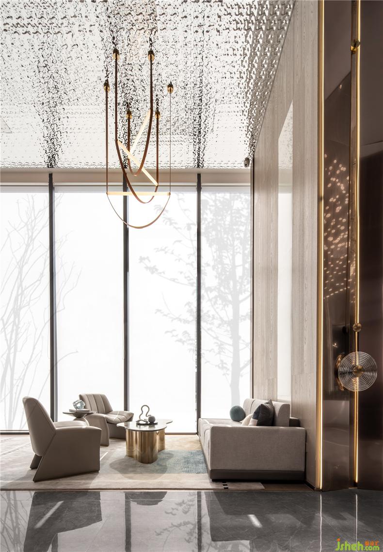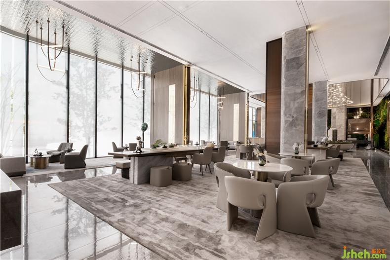在商務(wù)洽談區(qū)的軟裝布置中,又分為古箏區(qū)和茶藝區(qū),讓?shí)u臺(tái)、桌椅等等自由生長(zhǎng),去裝飾、去引導(dǎo)人去感知四季的往復(fù)、光陰的流轉(zhuǎn)。