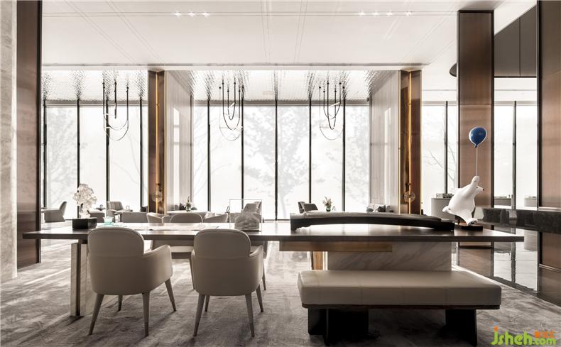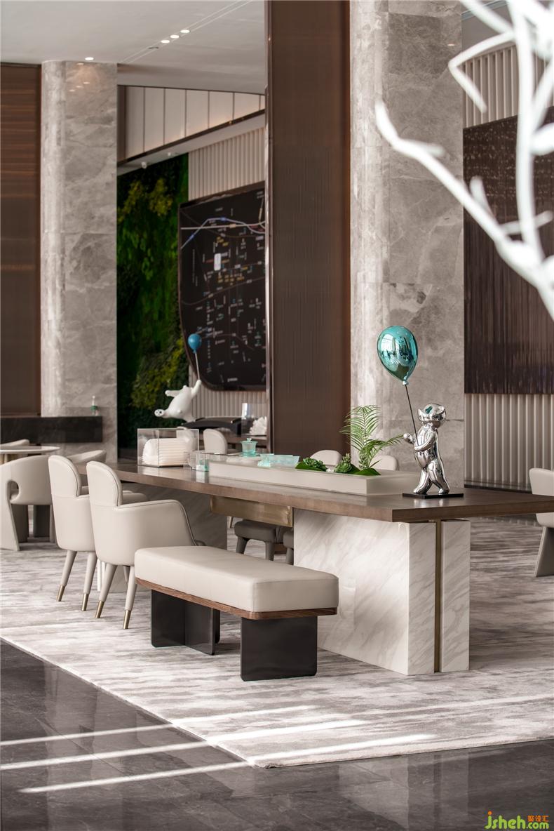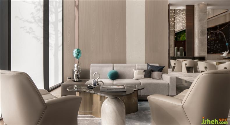 厚重與輕盈交織,極簡的形式與純粹的材質(zhì)相互映襯,人一坐進去,不知不覺就放松下來了,營銷中心設(shè)計營造出張弛有度,茶香、咖啡香這些濃厚的感官體驗和情緒體驗。