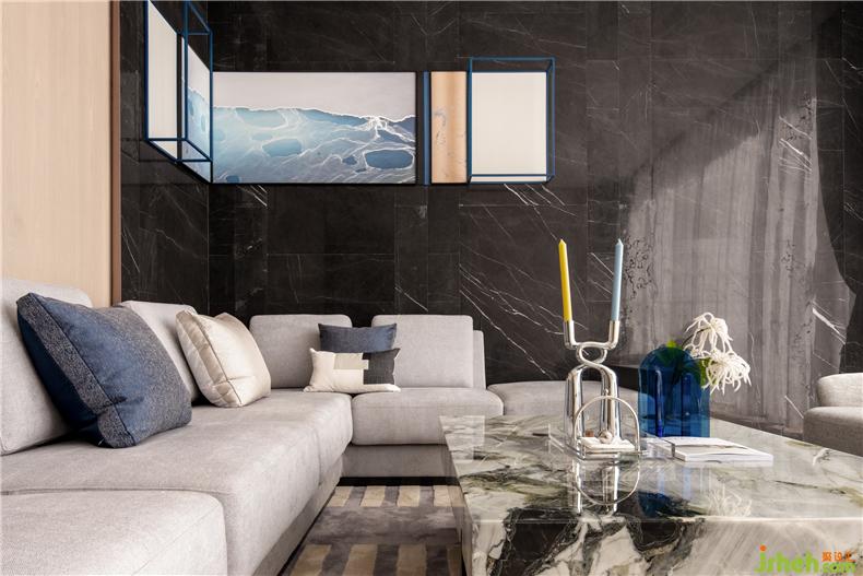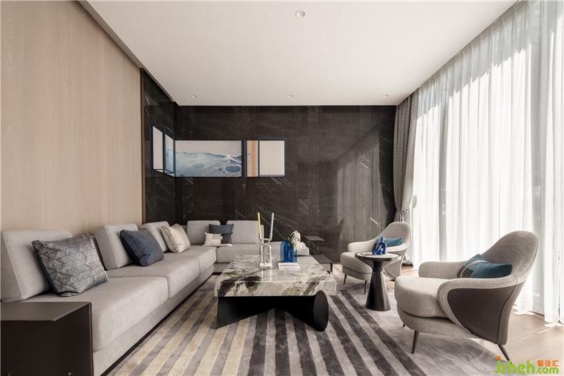 Vip洽談室以木色、深灰作為基地,用優(yōu)雅的藍色點綴豐盈空間,轉(zhuǎn)角立體掛畫,對應(yīng)著轉(zhuǎn)角沙發(fā),賦予情感色彩,在柔軟中美麗、自然而浪漫