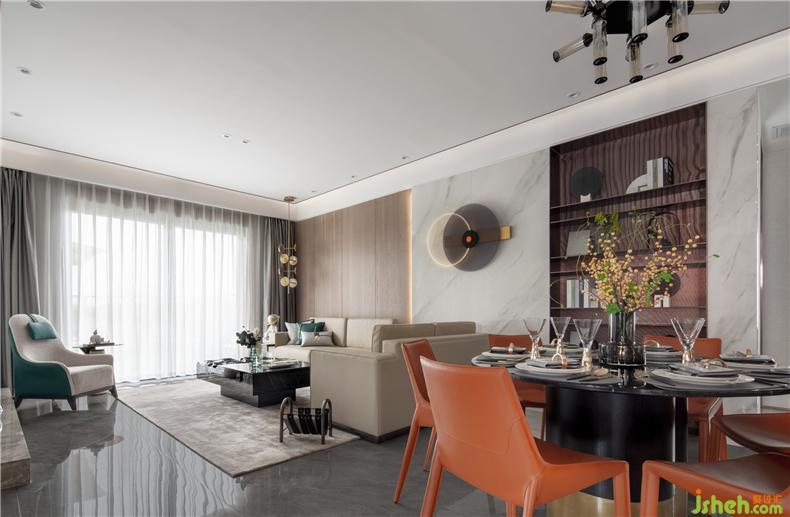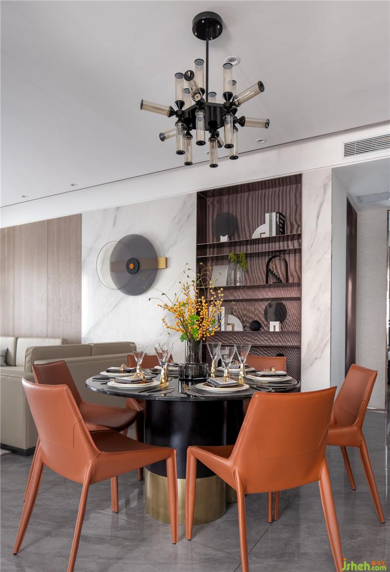 奪目的橙紅色基底,拋去一切冗余細(xì)節(jié)。目之所及的一杯一盞之中,樣板房設(shè)計(jì)皆能看到包容、溫情與回憶。在繁忙的工作之后,找回久違的愜意、愉悅和安寧。