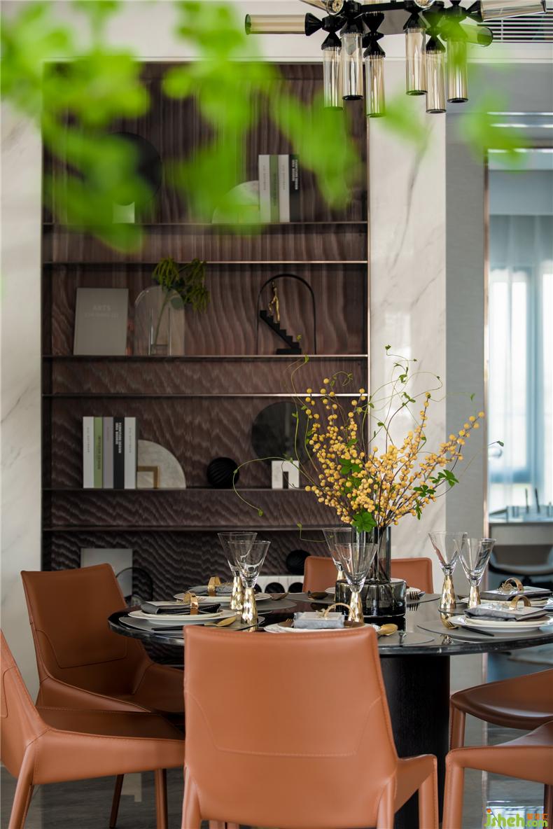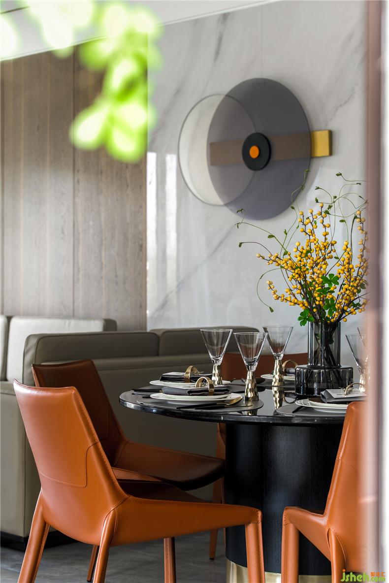 自然的紋理、精致的餐具,描摹用餐的儀式感。與墻面融為一體的邊柜恰到好處地塑造了均衡的秩序,讓每次就餐成為空間中美好的情緒所在,伴隨那些享受舒適的自我時(shí)光,以及親朋好友的熱情造訪。