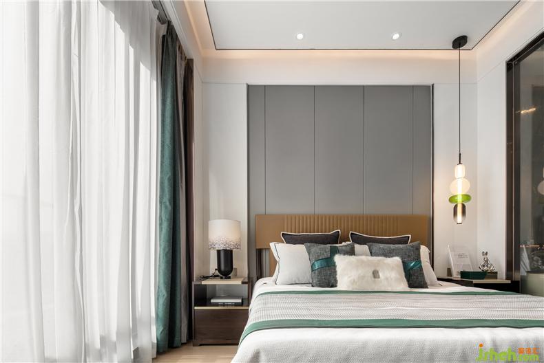 主臥秉承對(duì)生活風(fēng)尚的敏銳觸角,設(shè)計(jì)充分考量了休憩空間的舒適感與品質(zhì)感,樣板間設(shè)計(jì)摩登的經(jīng)典,品味的光澤,整體色調(diào)呼應(yīng)融合,張弛有度的沉淀與思考,美便在這靜謐悠長的情景中顯現(xiàn)出來。