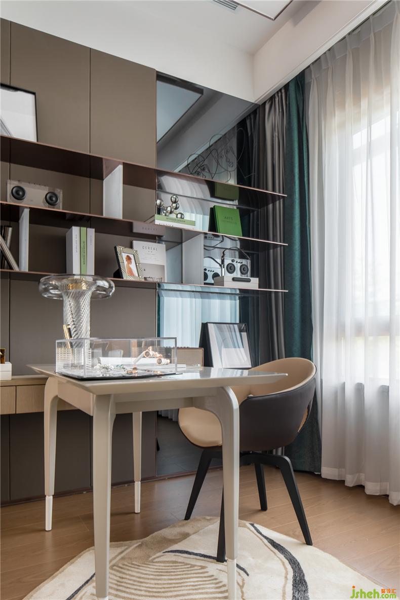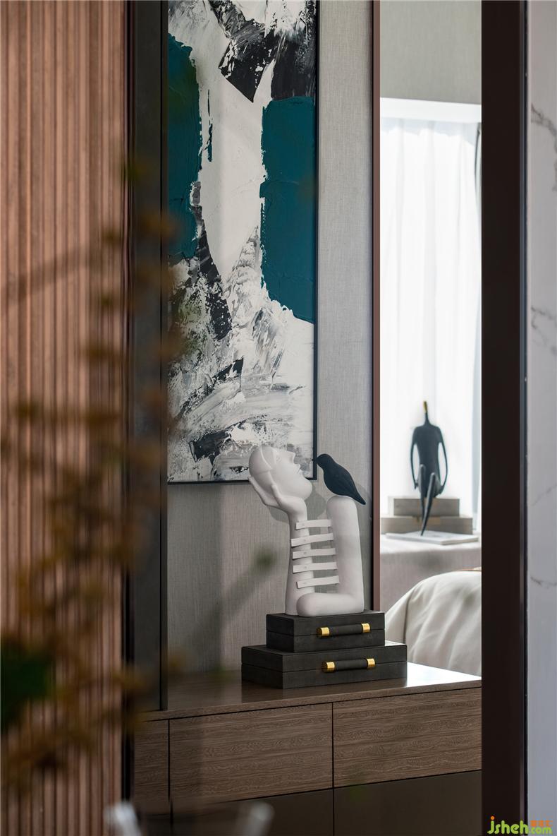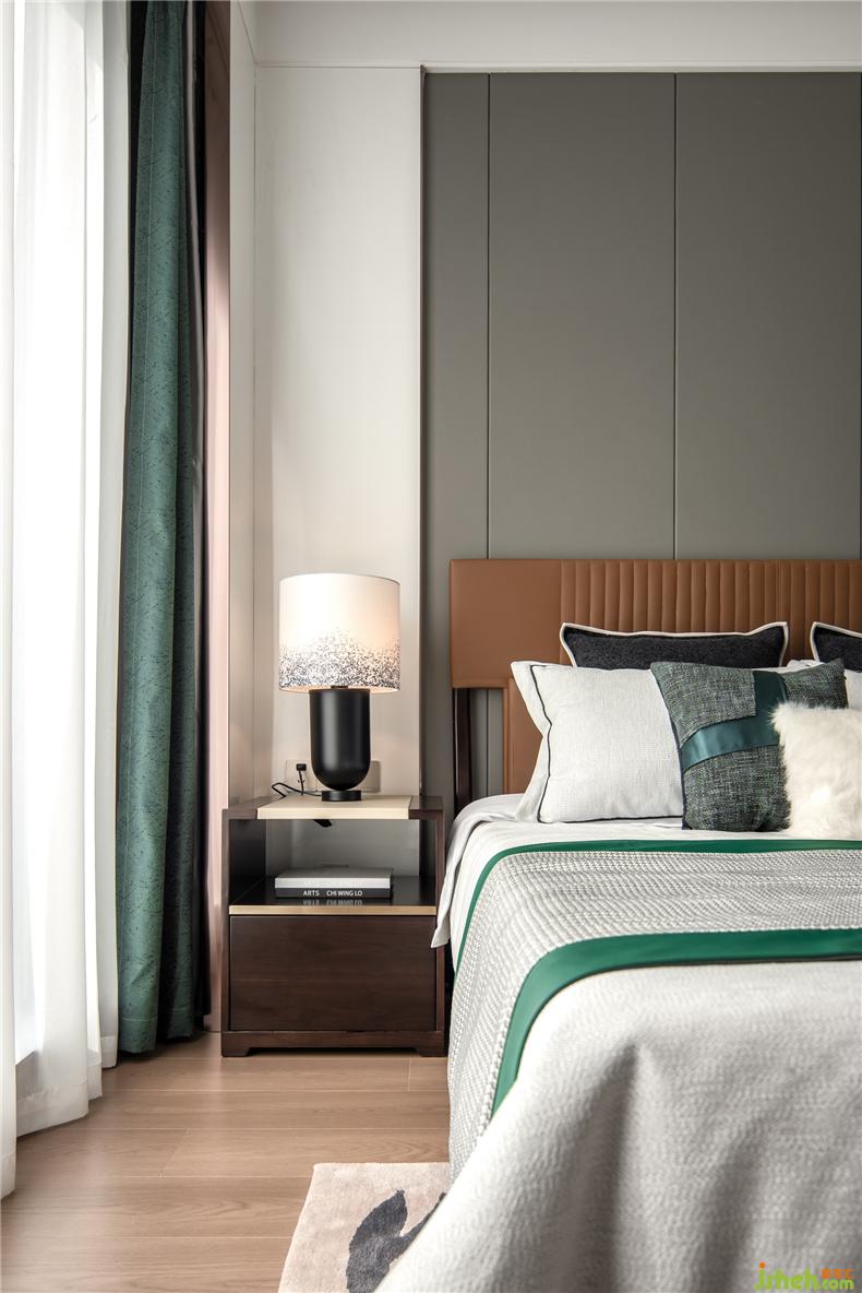 次臥進門處以衣柜作為遮擋,以塊面與線條的和諧搭配,以平和的材質(zhì)色彩,營造出沉謐簡寧的整體氛圍。