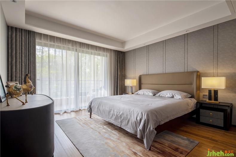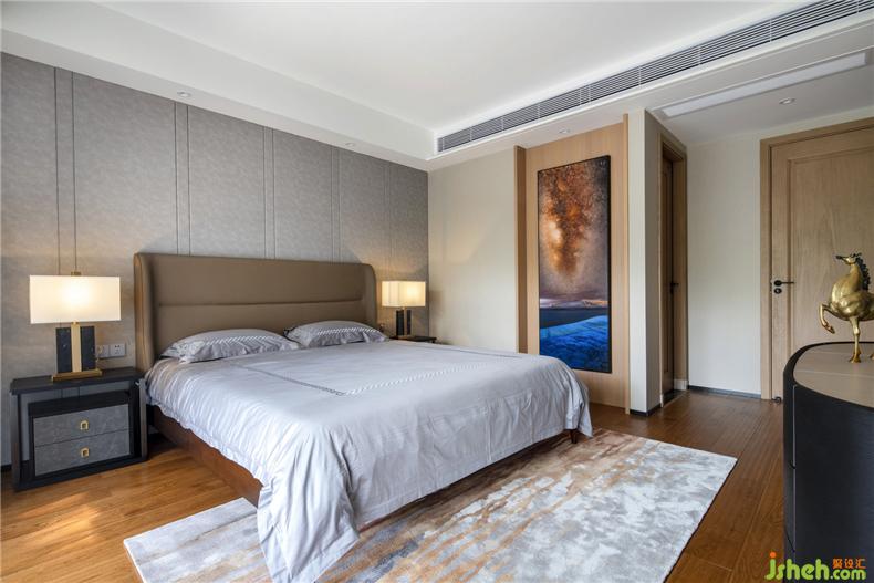 男主人的臥房主臥同樣簡約大方,在一側(cè)的墻壁上是男主人精心挑選的裝飾畫,典雅又極富品位。