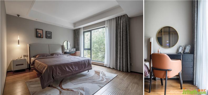 柔和的燈光,素雅的空間,簡單的梳妝臺,女主人的臥室雖簡約卻充盈浪漫的氣息