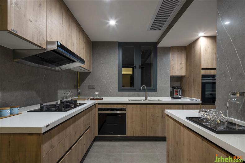 私宅定制設(shè)計超大空間廚房,操作臺面開闊,功能分區(qū)明顯,廚衛(wèi)收納空間豐富,盡享烹飪樂趣