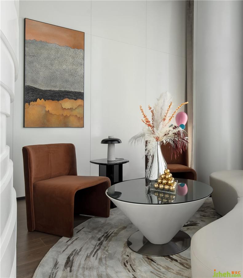VIP室分為兩間,以橙色為主VIP室溫暖柔和,利用空間特點(diǎn)設(shè)計(jì)曲線型沙發(fā),順應(yīng)空間特點(diǎn)設(shè)計(jì)。網(wǎng)紅倒錐形茶幾搭配炫彩花瓶,深棕色的啞光質(zhì)感沙發(fā)與同色系的皮革裝飾畫相互呼應(yīng),再點(diǎn)綴上卡通小熊IP的立體裝置,通過這樣的設(shè)計(jì)手法,將整個(gè)空間合為一體,色調(diào)活潑又不失沉穩(wěn)。
