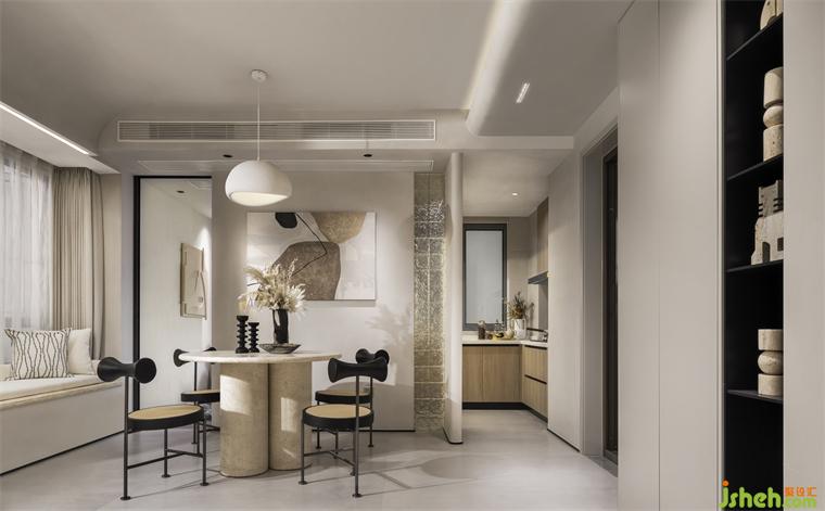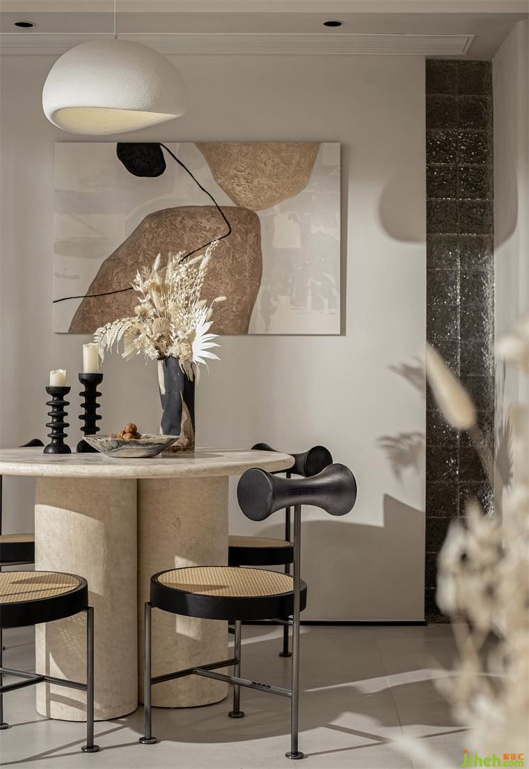 侘寂空間,便是在一個(gè)心靈療愈的空間內(nèi),從外界喧囂,轉(zhuǎn)化成內(nèi)里的煙火氣,即使樸素的設(shè)計(jì)細(xì)節(jié)卻也溫暖叢生。