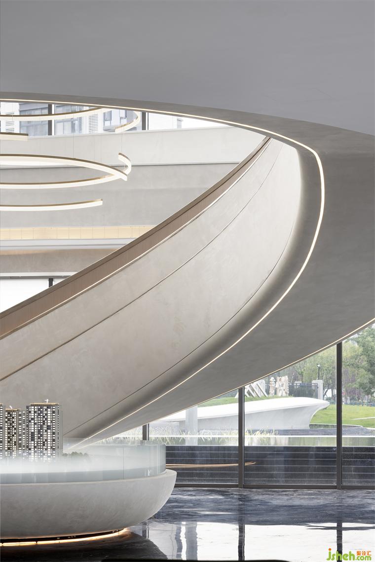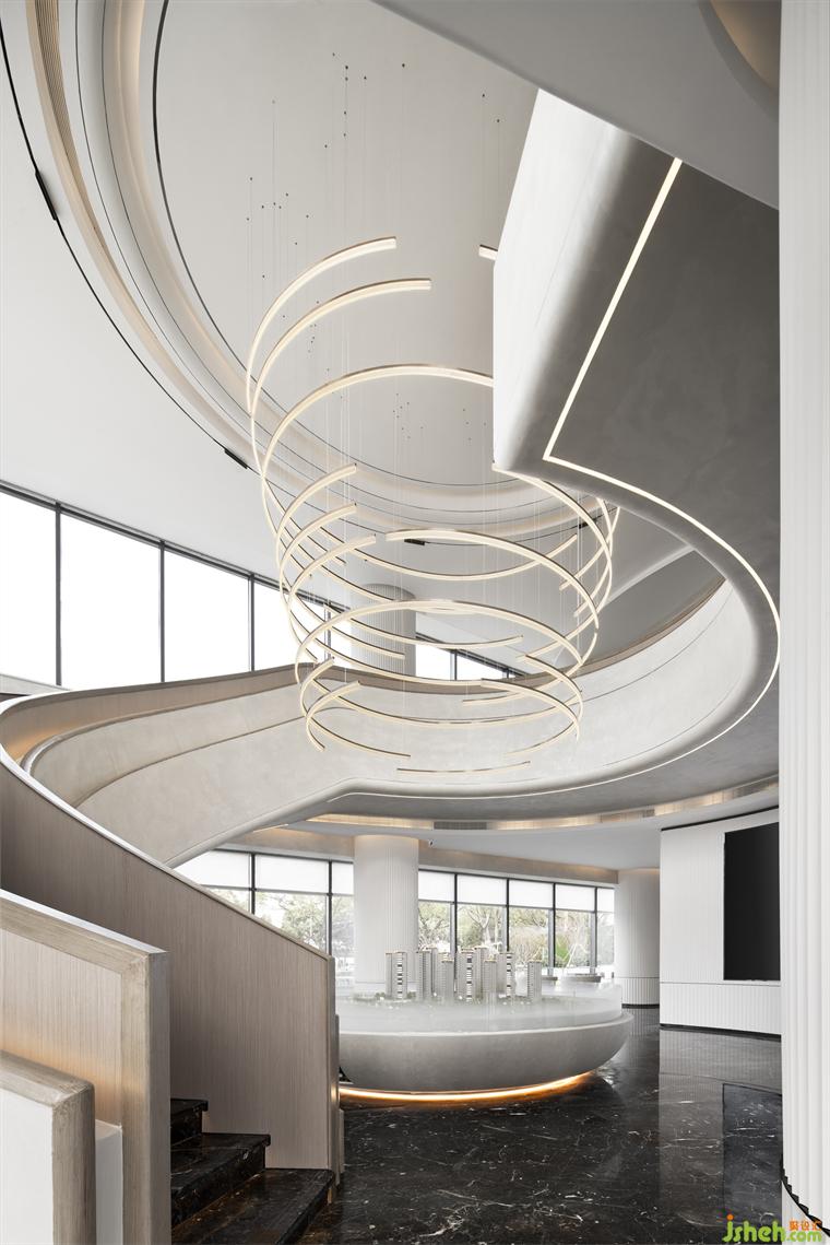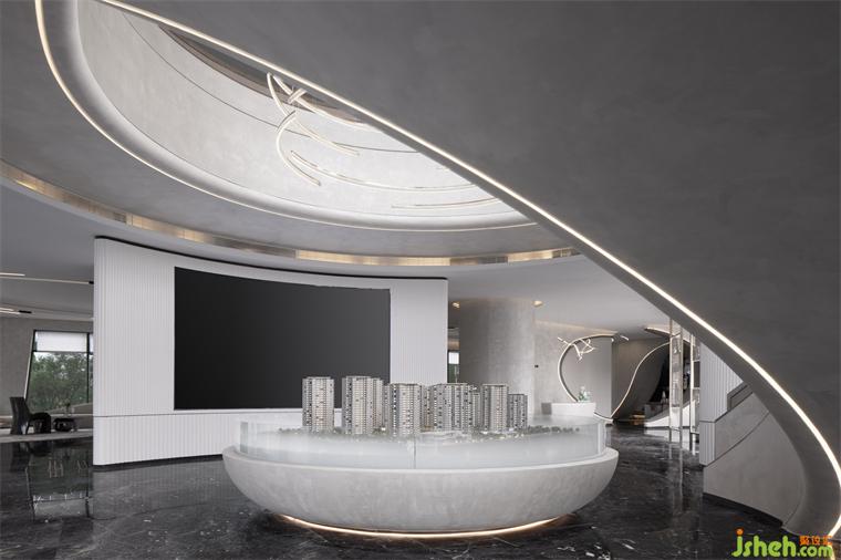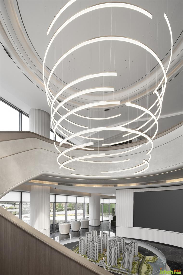 空間中的沙盤(pán)仿佛一個(gè)諾亞方舟,既承載著希望有充滿來(lái)自未來(lái)的神秘力量。售樓處設(shè)計(jì)整個(gè)區(qū)域就像浩瀚宇宙中的空間站,燈環(huán)盤(pán)旋環(huán)繞而上,通達(dá)無(wú)限,點(diǎn)亮整個(gè)空間站,指引航行的方向。