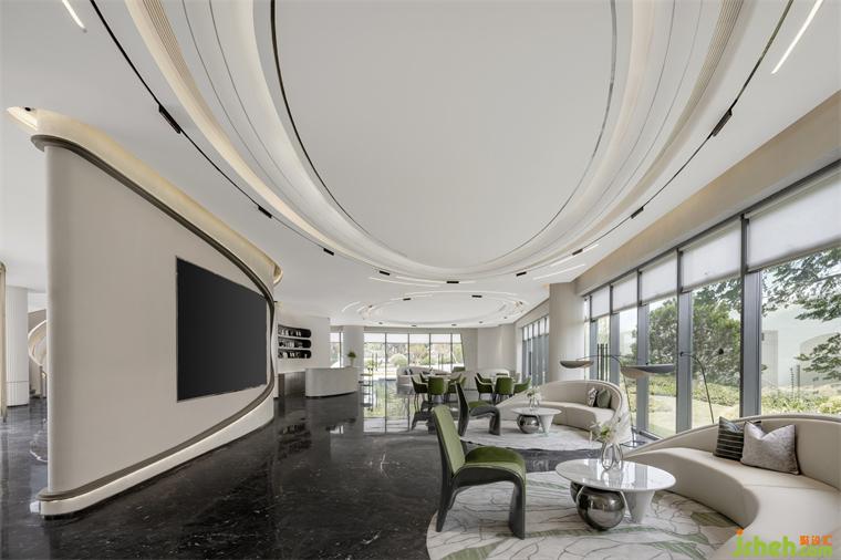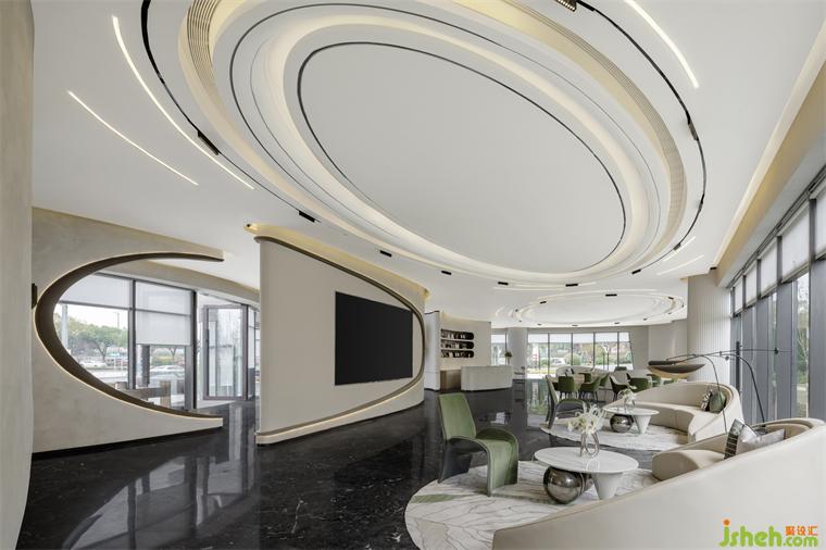引景入室,模擬像美學(xué)館一樣的空間,營(yíng)造現(xiàn)代都會(huì)的寧?kù)o世界。售樓處設(shè)計(jì)以圓與弧線為主要元素進(jìn)行設(shè)計(jì)的洽談區(qū),白色是空間色調(diào)的主旋律,局部點(diǎn)綴清新自然的綠,空間淡雅柔美,貼近自然。