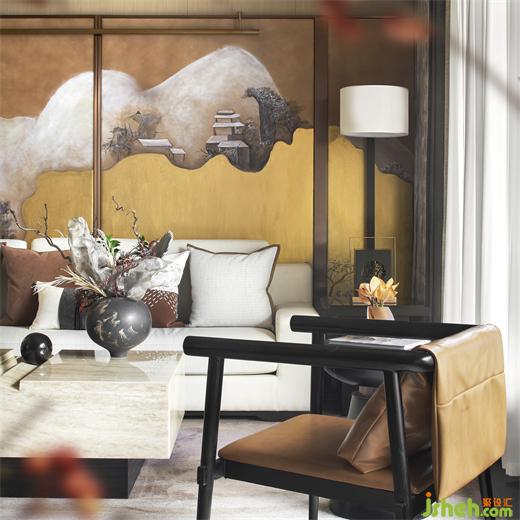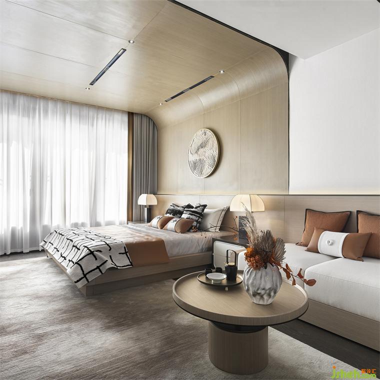 二樓長(zhǎng)輩房雅奢兼?zhèn)洌鸪烁∪A之后的藝術(shù)新體悟,合院樣板房軟裝設(shè)計(jì)而弧面與幾何線條的造型碰撞,與橘調(diào)帶來(lái)的沉穩(wěn)氣質(zhì)融合一致,為場(chǎng)景鋪敘生動(dòng)韻腳。在這里,沉入靜謐的藝術(shù)境界,自在同頻。