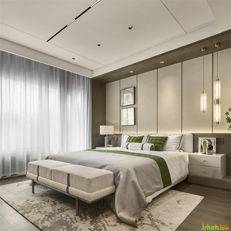 客臥運(yùn)用靜謐細(xì)膩的色彩和質(zhì)樸原色的材質(zhì),營(yíng)造出空間的美好與純粹,別墅軟裝設(shè)計(jì)置身其中,可以全身心去感受那份靜美和溫柔,一縷綠植讓臥室簡(jiǎn)約自然的質(zhì)感沁人心脾,搖曳的身姿在光影的游動(dòng)下顯得尤為靈動(dòng)。