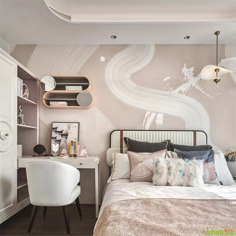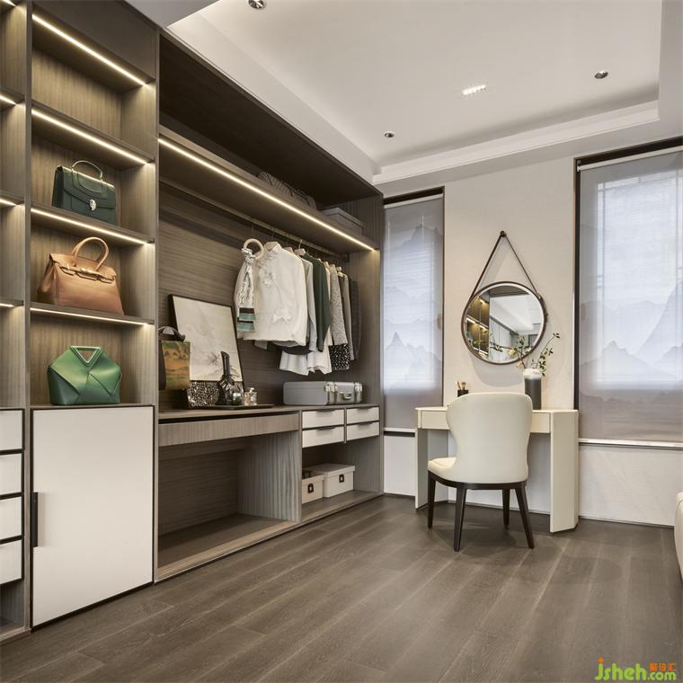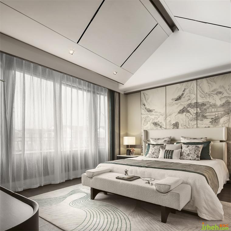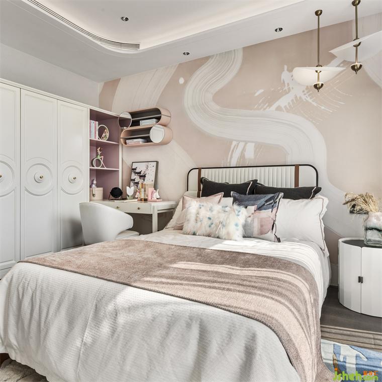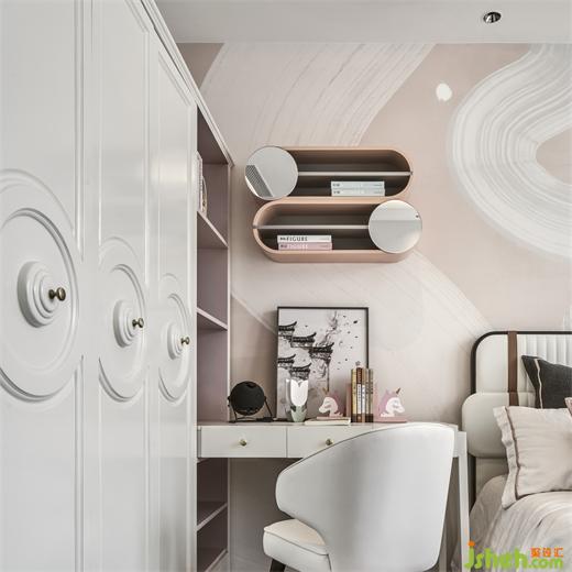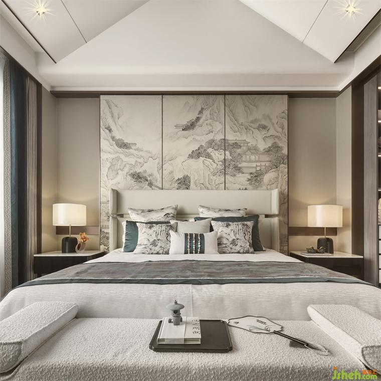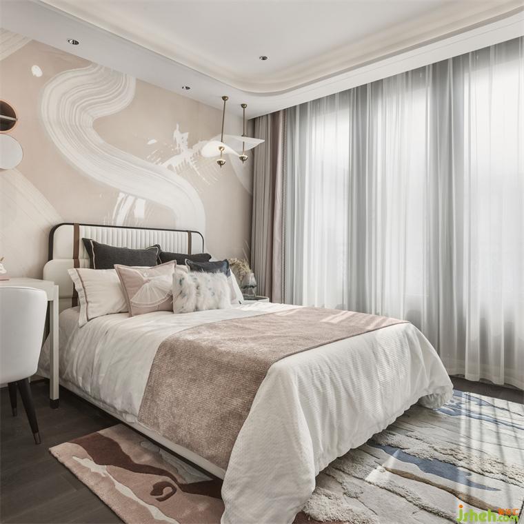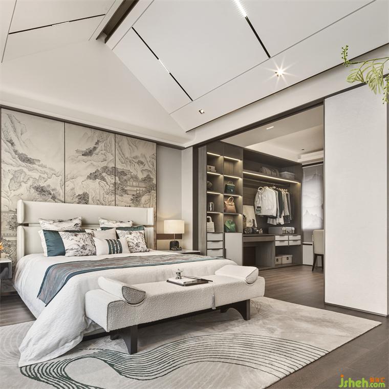 三樓主臥空間,藝術(shù)在這充當(dāng)著審美隱喻的角色,無形之中溝通著人與人的品位共鳴。別墅軟裝設(shè)計(jì)屋脊之下,繁雜之物被逐一剔除,空間中所余的皆是回歸本真的物象,雅灰調(diào)從休憩區(qū)蔓延至?xí)俊⒁旅遍g,這讓主臥空間時(shí)常被一種經(jīng)典優(yōu)雅的氣質(zhì)所籠罩。