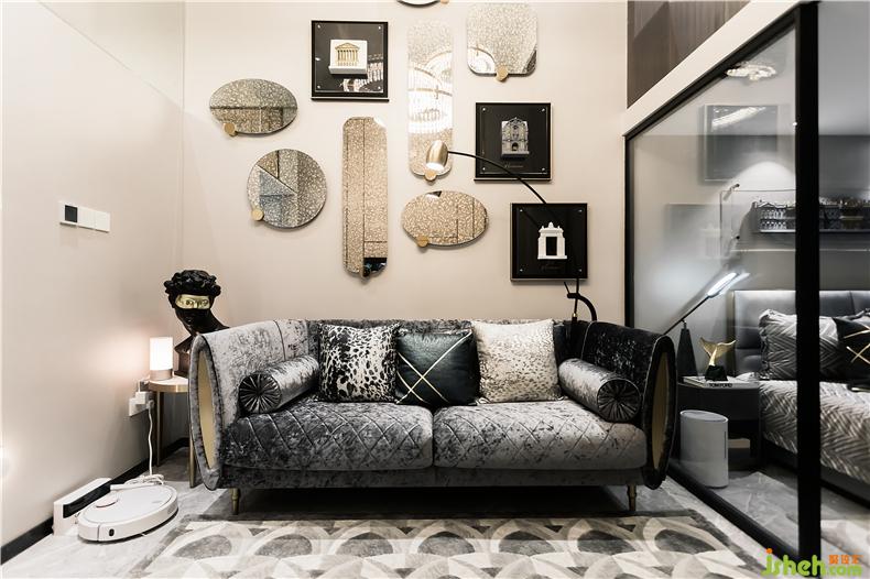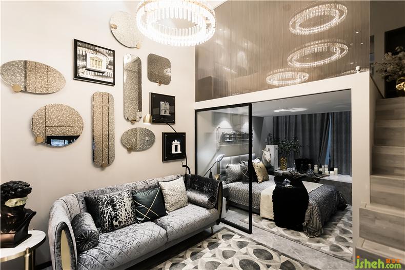 銀鏡與畫框升華了整個空間樣板房設(shè)計(jì)