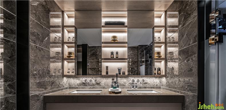 入戶右轉,長廊的盡頭是東西向長廊,三間臥室一字排開。東向端頭是主臥,獨居一隅。豐富功能分區(qū):睡眠區(qū)、男女衣帽區(qū)、盥洗區(qū)、化妝區(qū)多功能合一。步入式睡眠區(qū)、男女衣帽區(qū)視野自然延伸向窗外.