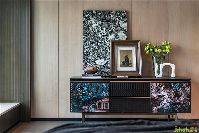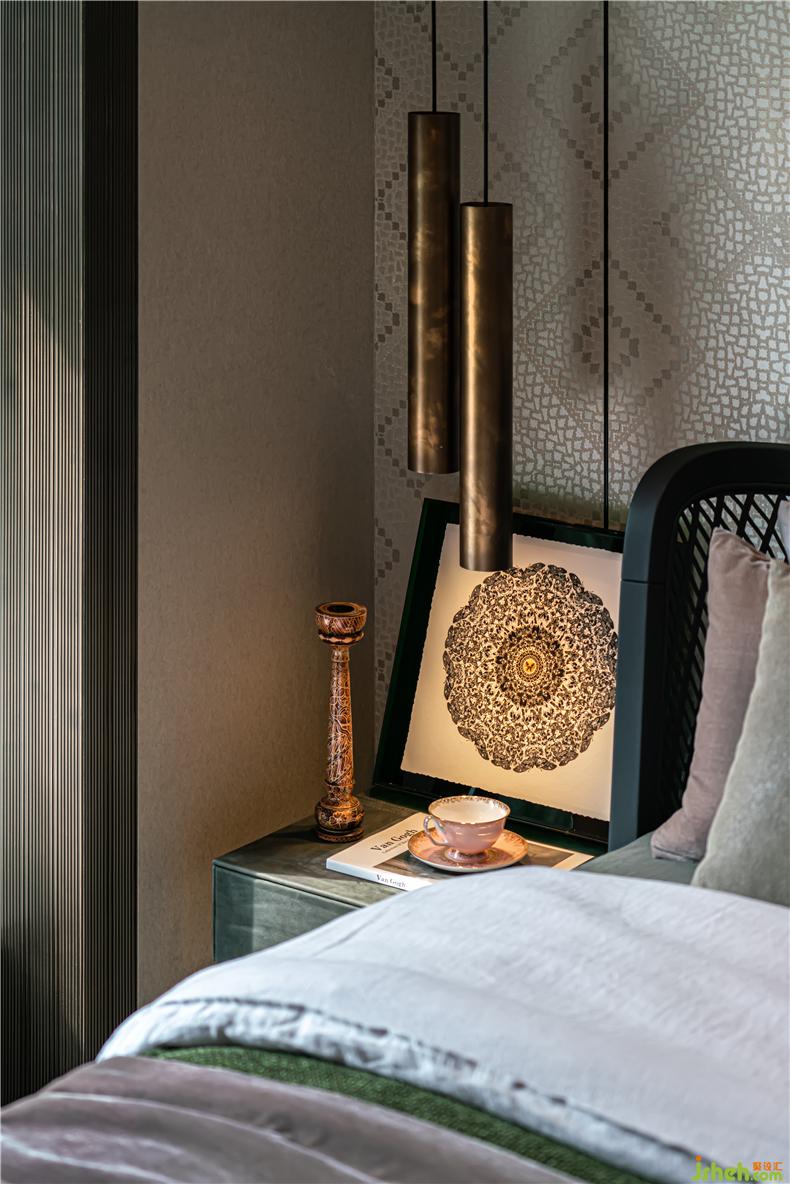 Diesel電視柜與復(fù)古綠貫穿的床前柜做工考究,由意大利手工匠人精湛制作,帶來(lái)獨(dú)特藝術(shù)風(fēng)格的奢華質(zhì)感,增添空間的自然古典氣息