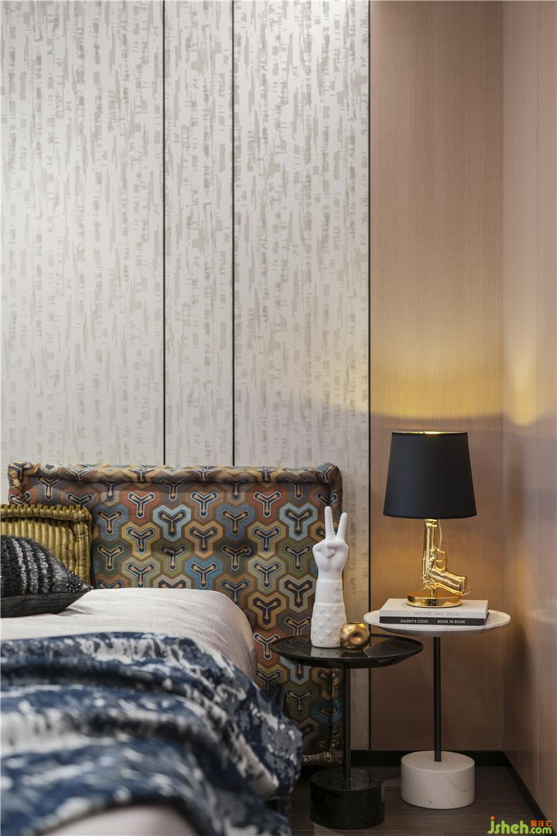 次臥一在保持精致格調(diào)的同時(shí),以具有‘野性’趣味與豐富想象力的荷蘭先鋒設(shè)計(jì)品牌 MOOOI 定制墻紙與豹紋軟裝相呼應(yīng),繼續(xù)演繹‘玩家’的前衛(wèi)審美意趣。