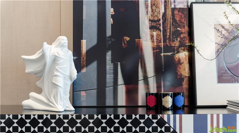 藝術(shù)品為整個(gè)空間增添了玩味的色彩,來(lái)自Bonaldo的Doppler藝術(shù)柜,柜門由不同的紋路和色彩營(yíng)造出獨(dú)特的視錯(cuò)覺效果,獨(dú)特的形式與材料相融合而成的藝術(shù)作品,為空間創(chuàng)造出能量與活力。