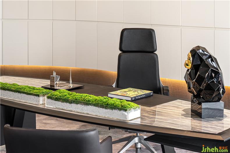 簡(jiǎn)約現(xiàn)代的開間布局,寬敞開闊的待客區(qū)域?qū)哟危仁寝k公空間亦可承載社交空間屬性,顛覆了傳統(tǒng)辦公室的單調(diào)氛圍,藝術(shù)的細(xì)節(jié)精心融入日常的舒適之中,呈現(xiàn)空間的奢雅格調(diào)和身份的質(zhì)感,營(yíng)造一種藝術(shù)空間的辦公體驗(yàn)。