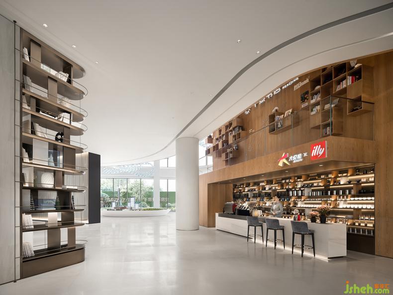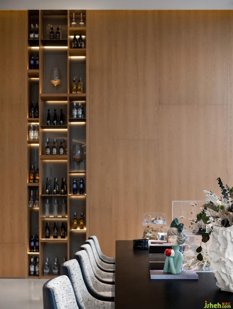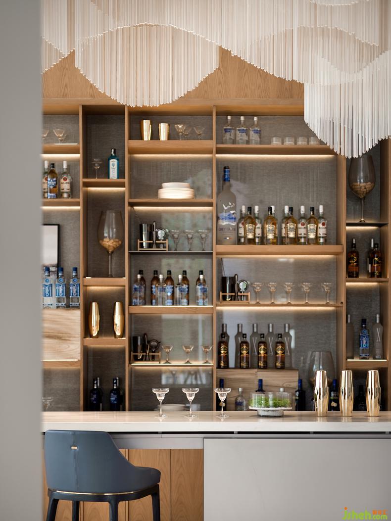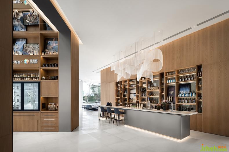水吧臺以光與影、明與暗、曲與直、光滑與粗糲等多種對比來展現(xiàn)空間的深度和層次感,售樓中心設計創(chuàng)造了舒適且富有美感的體驗空間。使人們以特定的態(tài)度或特殊的角度去重新發(fā)現(xiàn),凝視并感受生活。