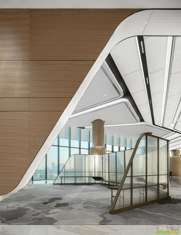 信步而入,半圍合態(tài)的視頻區(qū)旨在營(yíng)造視野與感官的情景觸動(dòng)。招商中心設(shè)計(jì)參觀動(dòng)線(xiàn)融合建筑本身帶來(lái)的優(yōu)勢(shì)而漸入佳境,品牌的故事也隨著蜿蜒的木紋曲線(xiàn)設(shè)計(jì),不斷的延伸和展現(xiàn)開(kāi)來(lái)。
