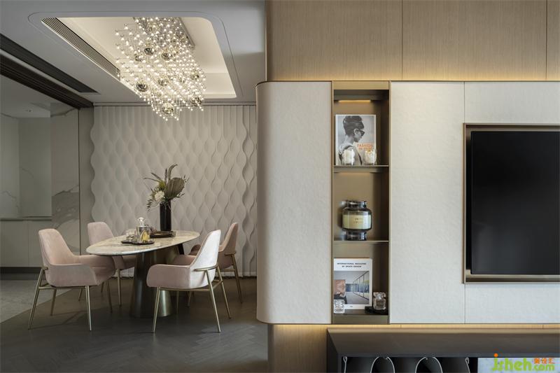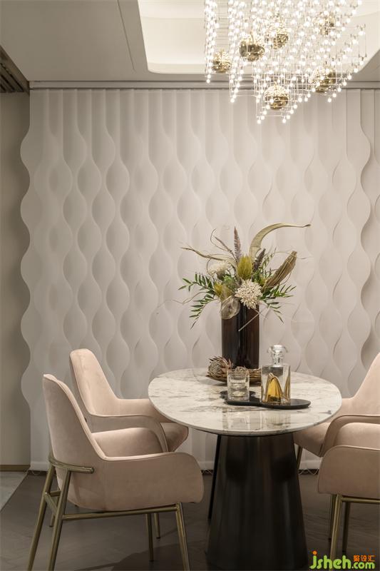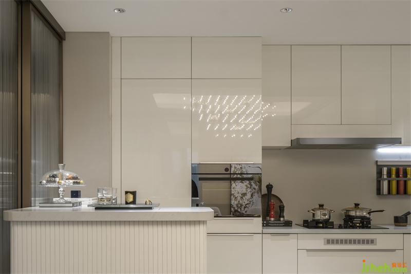 規(guī)整的收納、流暢的動(dòng)線,不拘泥于餐廚的用途所在,而是將美感延伸開(kāi)來(lái)??臻g藝術(shù)主燈宛如點(diǎn)點(diǎn)繁星散落,流動(dòng)的藝術(shù)在變換間被注入情感色彩,讓家有了詩(shī)意和溫度。